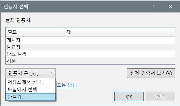 그런데, 이렇게 어려움을 느끼고 있다는 걸 알았는지 버전 16.3.7에 확인해본 결과 다시 테스트 인증서 만들기 기능이 돌아왔다. 그래서 VS를 이용하는 방법, PowerShell을 이용하는 방법을 모두 보여주기 위해 글을 수정하였다.