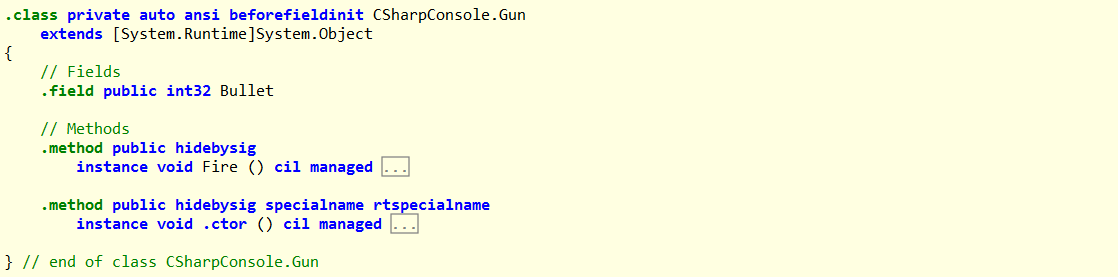 간단하게 아래와 같은 클래스를 만들어 컴파일하고, 이를 다시 ILSpy로 디컴파일해 보았다.