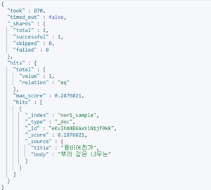 body 필드가 “나무”인 document를 검색하면, "나무는"으로 검색하지 않아도 document가 검색되는 걸 확인할 수 있다.
