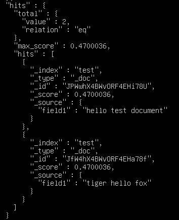 "field1": “hello test document”