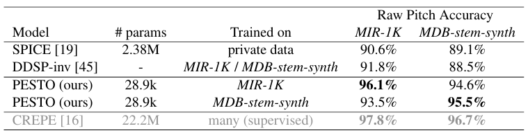 PESTO는 프랑스의 학교인 Télécom Paris와 Sony의 연구자가 2023년 발표한 Pitch 예측 모델이다. 논문은 [2309.02265] PESTO: Pitch Estimation with Self-supervised Transposition-equivariant Objective (arxiv.org)에서 확인할 수 있다.