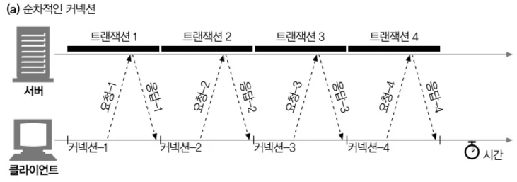 HTTP 클라이언트가 여러 개의 커넥션을 맺음으로써 여러 개의 HTTP 트랜잭션을 병렬로 처리할 수 있게 한다.